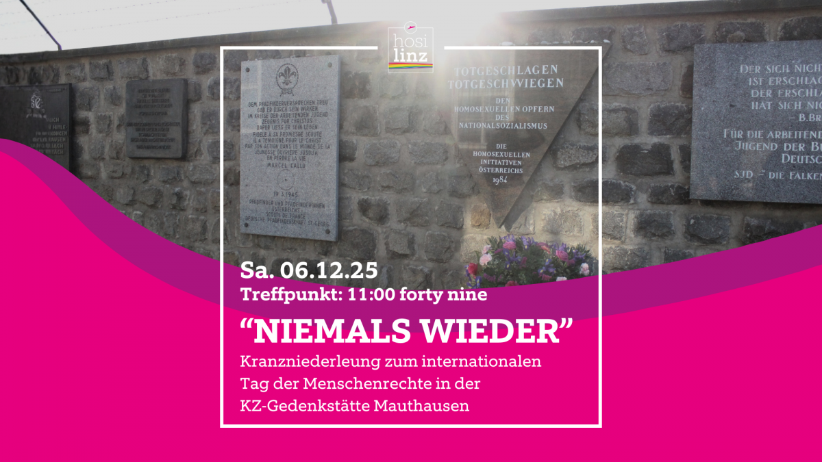 On Saturday, December 6, HOSI Linz will travel to the Mauthausen Concentration Camp Memorial to lay a wreath at the memorial stone for homosexual victims of National Socialism.