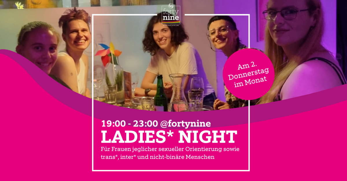 Die Ladies*Night soll ein Safe Space für queere Frauen* sein zum gemütlichen Zusammensitzen und Austauschen. Was die genaue Ausgestaltung des monatlichen After-Work-Get-Togethers anbelangt, wird sich an den Bedürfnissen und Wünschen der Besucherinnen* orientiert: Von zwanglosen Teetratschs bis hin zu unterhaltsamen Spieleabenden inklusive DJane ist alles möglich.