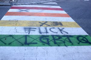 Diskriminierung, Homo-, Trans-, Interphobie feiern auch 2021 fröhliche Urständ. Zwar dürfen gleichgeschlechtliche Paare seit zwei Jahren sogar heiraten, aber das bedeutet noch nicht, dass die LGBTIQ*-Community in der Mitte der Gesellschaft angekommen ist. Nicht nur, dass immer noch ein echtes Antidiskriminierungsrecht fehlt, wie sehr Toleranz immer noch nicht in der Gesellschaft angekommen ist, zeigen die Schmierereien am Regenbogen-Zebrastreifen in Linz deutlich.