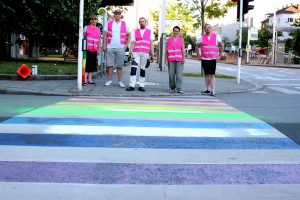 „Unser schöner Regenbogen-Zebrastreifen wurde vor ein paar Tagen mit Schimpfwörtern beschmutzt – und das im öffentlichen Raum und ausgerechnet im Pride-Monat Juni“ zeigt sich Mag. Richard Steinmetz, Vereinssprecher der HOSI Linz verärgert.
