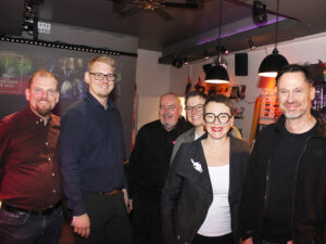 HOSI Vorstand (Banasik, Müller, Wartner) mit Gmach, Schobesberger und Langer – Barraum forty nine