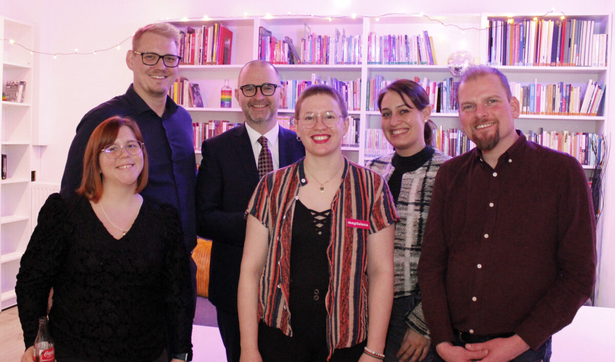 Dietmar Prammer und Stadträtin Tina Blöchl gemeinsam mit dem Vorstand der HOSI Linz