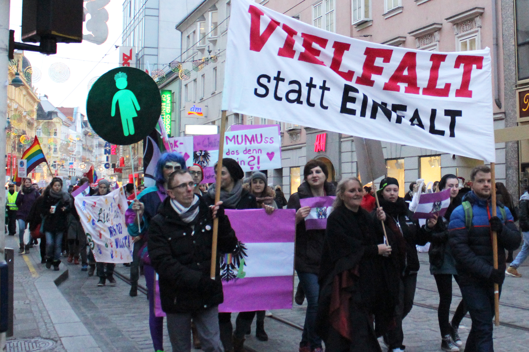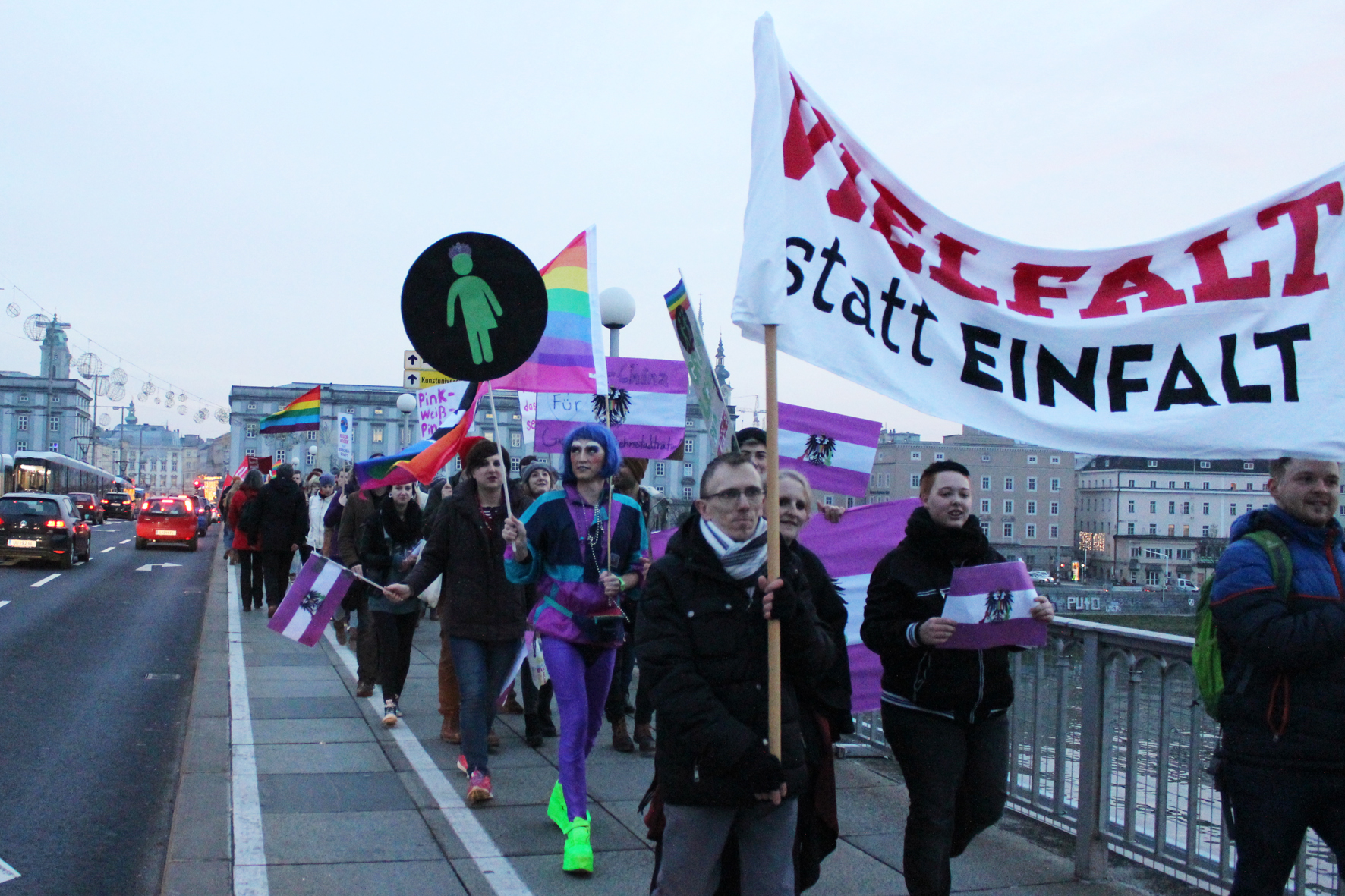 vielfalt statt einfalt – demo: mozartkreuzung – neues rathaus, 11. Dezember 2015