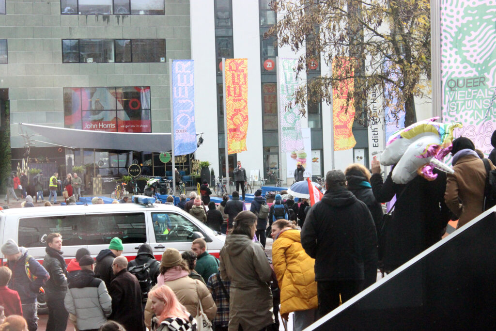 Die gestern, Samstag, abgehaltene Lesung der aus Oberösterreich stammenden Dragqueen Cherry T Joystick war ein voller Erfolg: Rund 140 Zuhörer*innen kamen und verbrachten einen unterhaltsamen Nachmittag, wohingegen die Demonstrationsaufrufe der MFG anderer rechtsreaktionärer Personen nicht gefruchtet haben. Die gut 50 Teilnehmer*innen der Protestkundgebung standen abseits im Regen; zu Konflikten kam es dank starker Polizeipräsenz nicht.