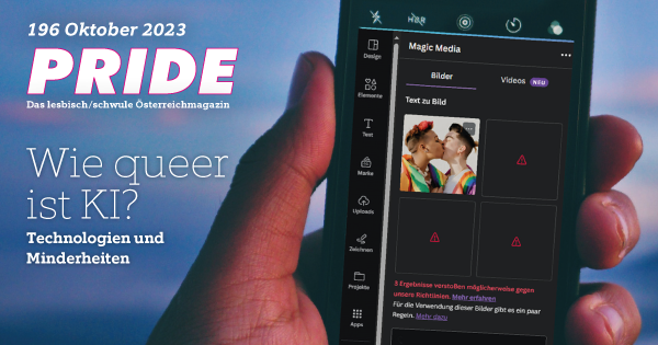 Die Ausgabe 196/Oktober 2023 des PRIDE Magazins geht der Frage nach, wieweit neue Technologien wie KI mit Minderheiten umgehen.