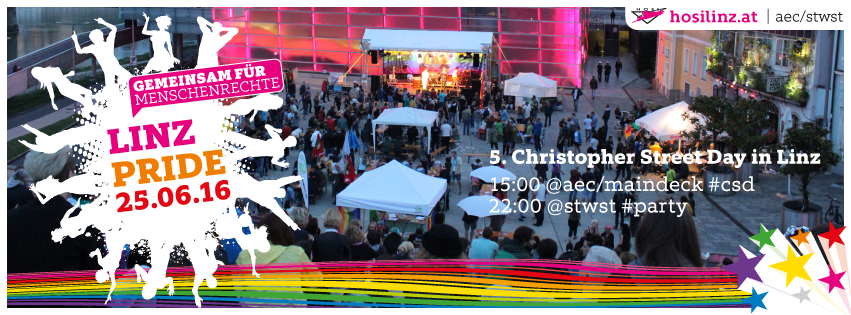 Bereits vier Mal – nämlich 2009-2011 und 2015 – veranstaltet die Homosexuelle Initiative Linz (HOSI Linz) aus diesem Anlass ein Straßenfest. Fanden die ersten drei in der Fabrikstraße statt ging die Neuauflage 2015 unter dem Titel „Gemeinsam sichtbar – LINZ PRIDE 2015“ am Maindeck des AEC über die Bühne. Dort soll nun am 25.06.2016 auch das 5. Straßenfest bei freiem Eintritt als öffentliche Veranstaltung für alle Interessierte stattfinden, bei der die Vielfalt des lesbisch/schwulen/transGender-Lebens in Oberösterreich zum Ausdruck kommen soll.