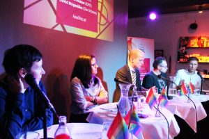 Die große Abschlussfrage, was gegen die LGBTIQ*-Phobie, die trotz einer mit deutlicher Mehrheit sich grundsätzlich als akzeptant zeigenden Bevölkerung immer wieder aufflackert, unternommen werden könne und solle, bescherte – bis auf die FPÖ (es solle keine Werbung für bestimmte Lebensentwürfe gemacht werden) die Einigkeit, dass sachgerechte Bildung das Schlüsselwort dazu sei. In der Publikumsdiskussion richtete sich eine sehr authentische Wortmeldung an den FPÖ-Politiker: Haben Sie vor uns Angst? Was nehmen Ihnen die LGBTIQ*s denn weg? (Nichts, natürlich, war die Antwort).